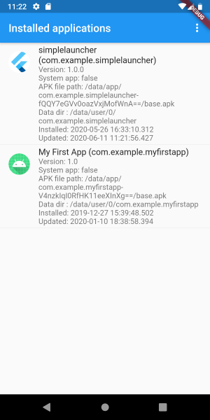 _getInstalledApps() 를 통해 invokeMethod('getInstalledApps') 를 호출하여 결과를 얻고 ListView.builder() 로 결과를 화면에 생성한다.