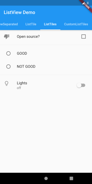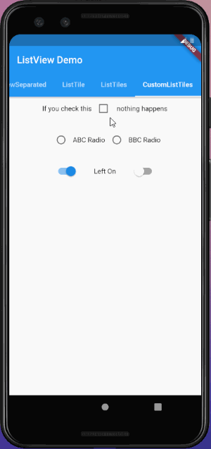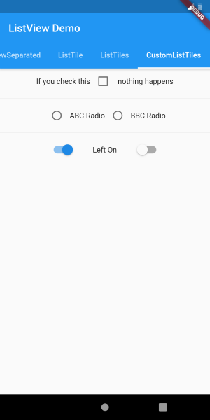 CheckboxListTile, RadioListTile, SwitchListTile 를 적용했다.