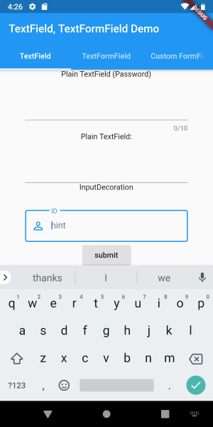 Material Design 의 사용자의 텍스트 입력을 받을 수 있는 위젯이다.