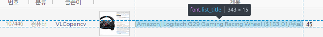 웹브라우저의 개발자 도구를 사용해서 게시글 제목의 CSS 정보를 찾아본다.
