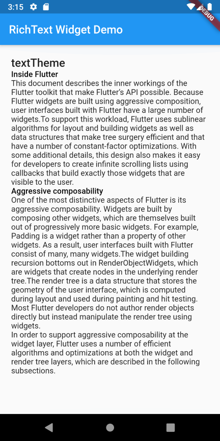 The RichText widget displays text that uses multiple different styles.