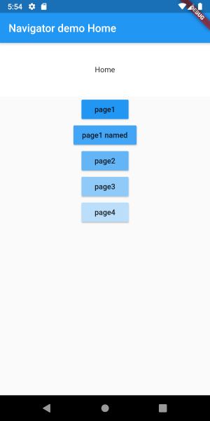 'page1' 버튼을 누르면 MaterialPageRoute() 로 page1 route 를 생성하여 push() 한다.