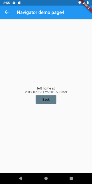 Page2 에서 home page 로 이동하기 위해 'Back' 버튼을 누른 시간을 전달하여 home page 에 표시 해본다.