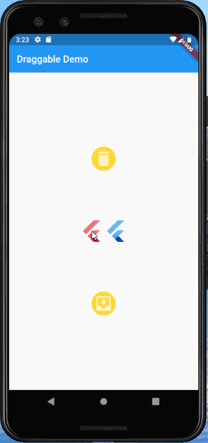 노란색 아이콘은 각각 DragTarget 위젯이 되고 두개의 Flutter logo 는 Draggable 위젯이 된다.