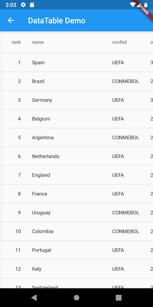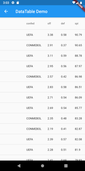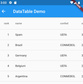 Material Design 의 데이터 테이블을 그려주는 Flutter Widget 이다.