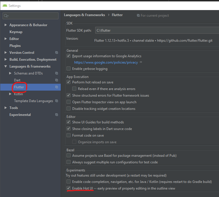 Flutter tooling