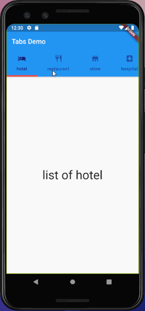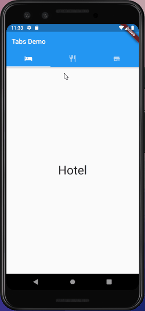 A material design widget that displays a horizontal row of tabs. Typically created as the AppBar.bottom part of an AppBar and in conjunction with a TabBarView.