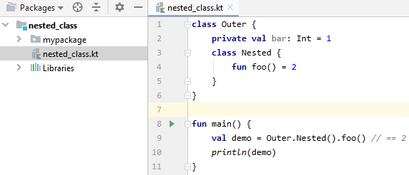 원문 https://kotlinlang.org/docs/reference/nested-classes.html 을 보며 정리.